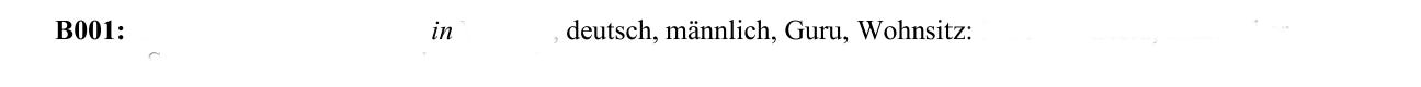 B001 Name, Vorname, Geburtsdatum in Geburtsort, deutsch, männlich, Guru, Wohnsitz Süddeutschland (Informationen anonymisiert)