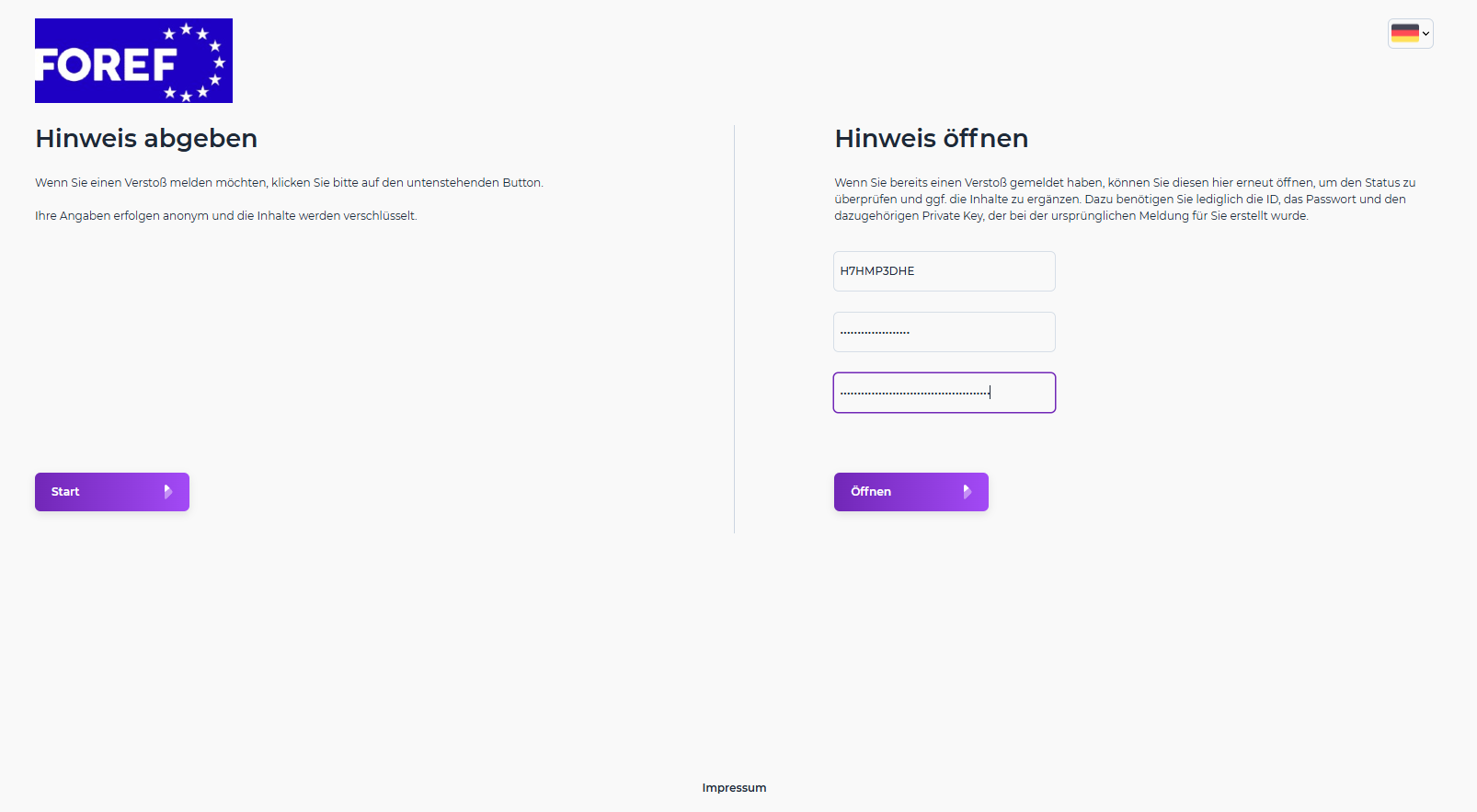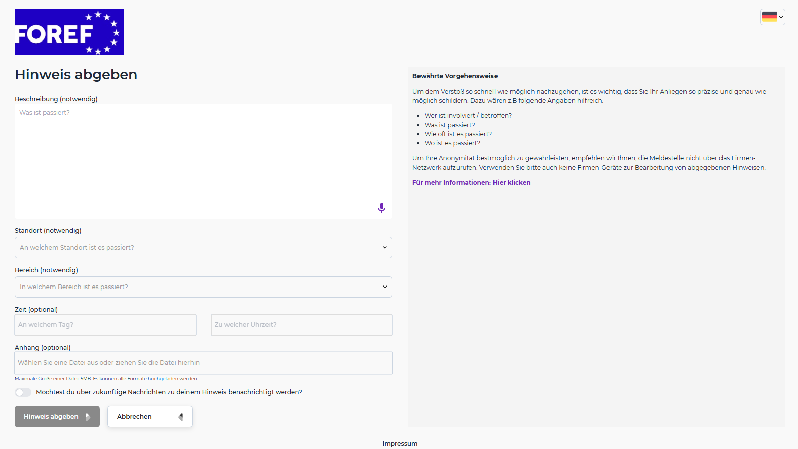 Das FOREF-Hinweisgeber- und Meldesystem