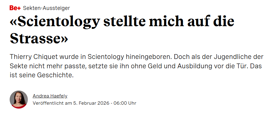 Fragt man den Artikel nun konsequent nach konkreten Infos ab, stellt man fest, dass das versprochene "Und heute? Alles Schnee von gestern? Von wegen..." die größte Lüge des Artikels ist. Seinen Aussagen folgend war der angesprochene Thierry Chiquet 17, als er Scientology verlies - freiwillig oder unfreiwillig spielt hier erst einmal keine Rolle. Folgt man dem Beobachter (Achtung! Bezahlschranke! Aber über Insta kommt man hier zum vollen Artikel) auf Instagram, erfahren wir, er ist heute 35. Stamm berichtet also über Vorgänge, die stramme 18 Jahre her sind, also die Hälfte des Lebens des Opfers. Also doch "Schnee von gestern"? Offenkundig.